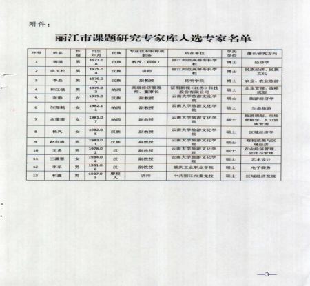 我校无党派人士洪玉松被选聘为丽江市人民政府课题研究专家库聘任专家。