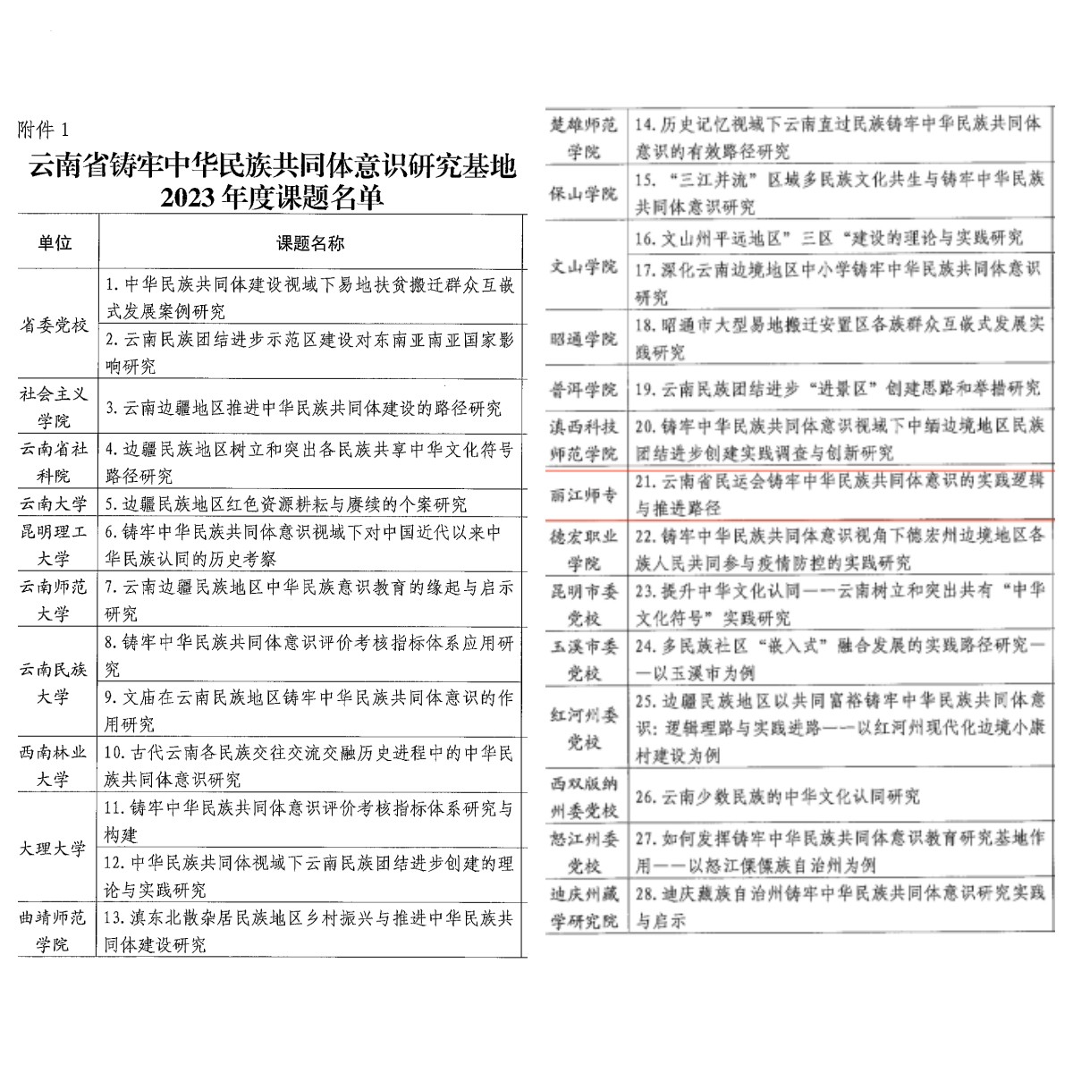 这是学校自2021年7月成为首批云南省铸牢中华民族共同体意识研究基地以来,第二次获准的立项项目。