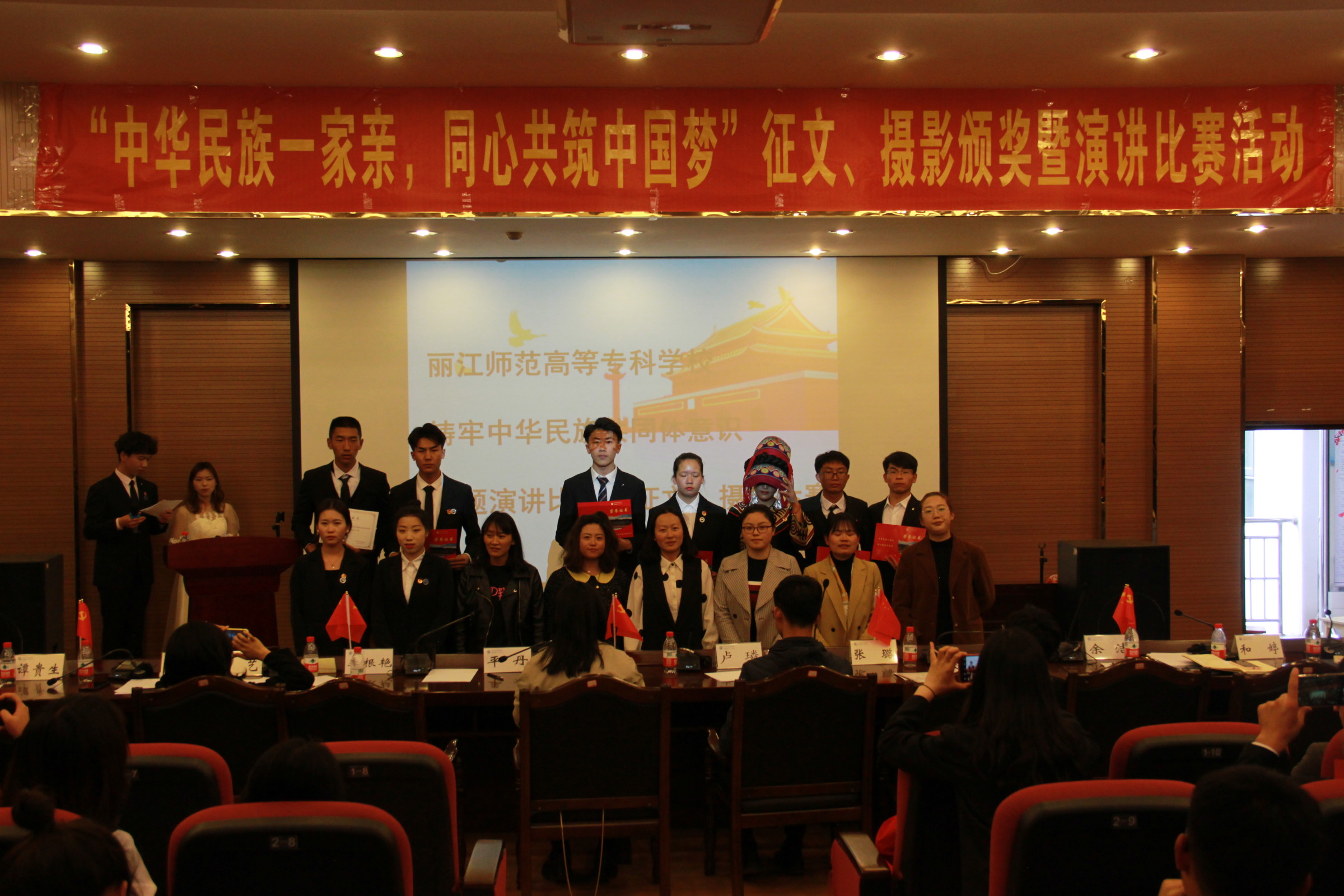 为广泛持久地开展民族团结进步教育,引导青年大学生铸牢中华民族共同体意识,4月16日下午2点,由丽江师范高等专科学校主办,统战部、宣传部、教务处、学生处、校团委、文学与传媒学院承办的“中华民族一家亲,同心共筑中国梦”主题征文、摄影颁奖暨演讲比赛活动在实训楼318隆重举行。