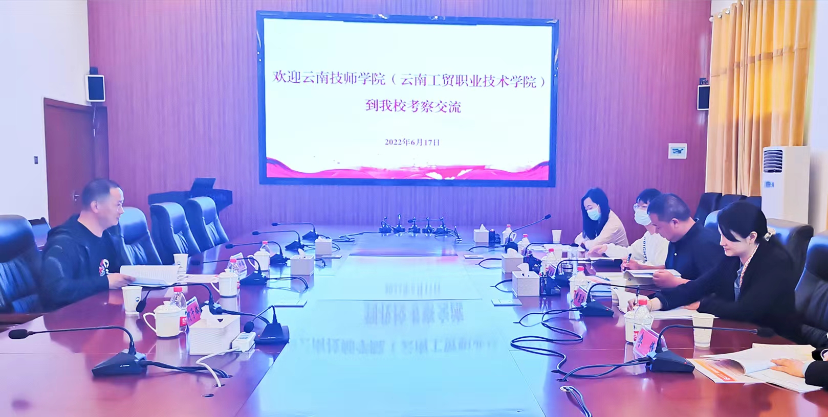 2022年6月17日上午,云南技师学院(云南工贸职业技术学院)民族工作交流考察组一行五人,到学校交流考察民族团结进步创建工作。