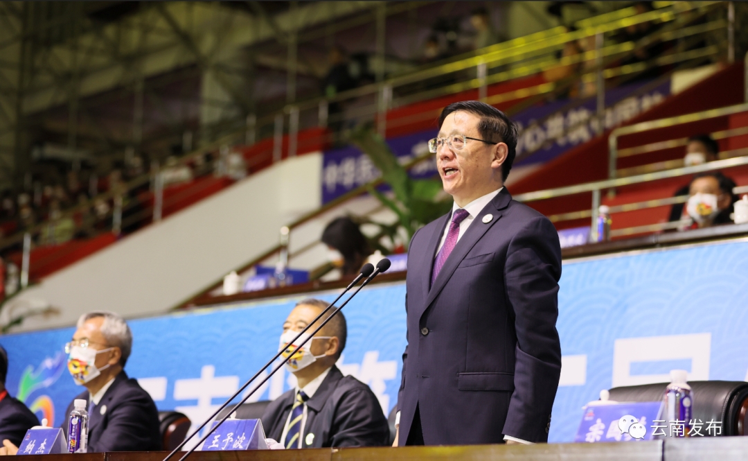 王予波宣布:云南省第十二届少数民族传统体育运动会开幕。