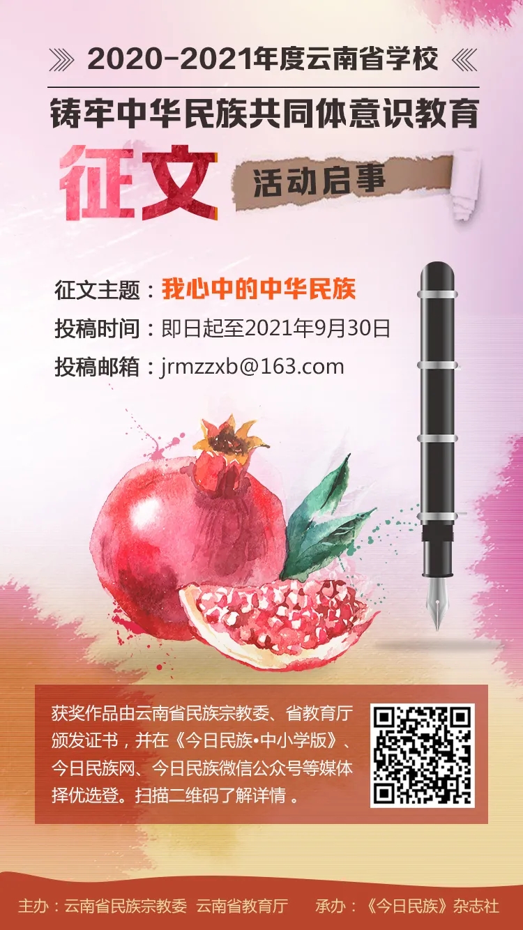 2020—2021年度云南省学校铸牢中华民族共同体意识教育征文活动开始啦!