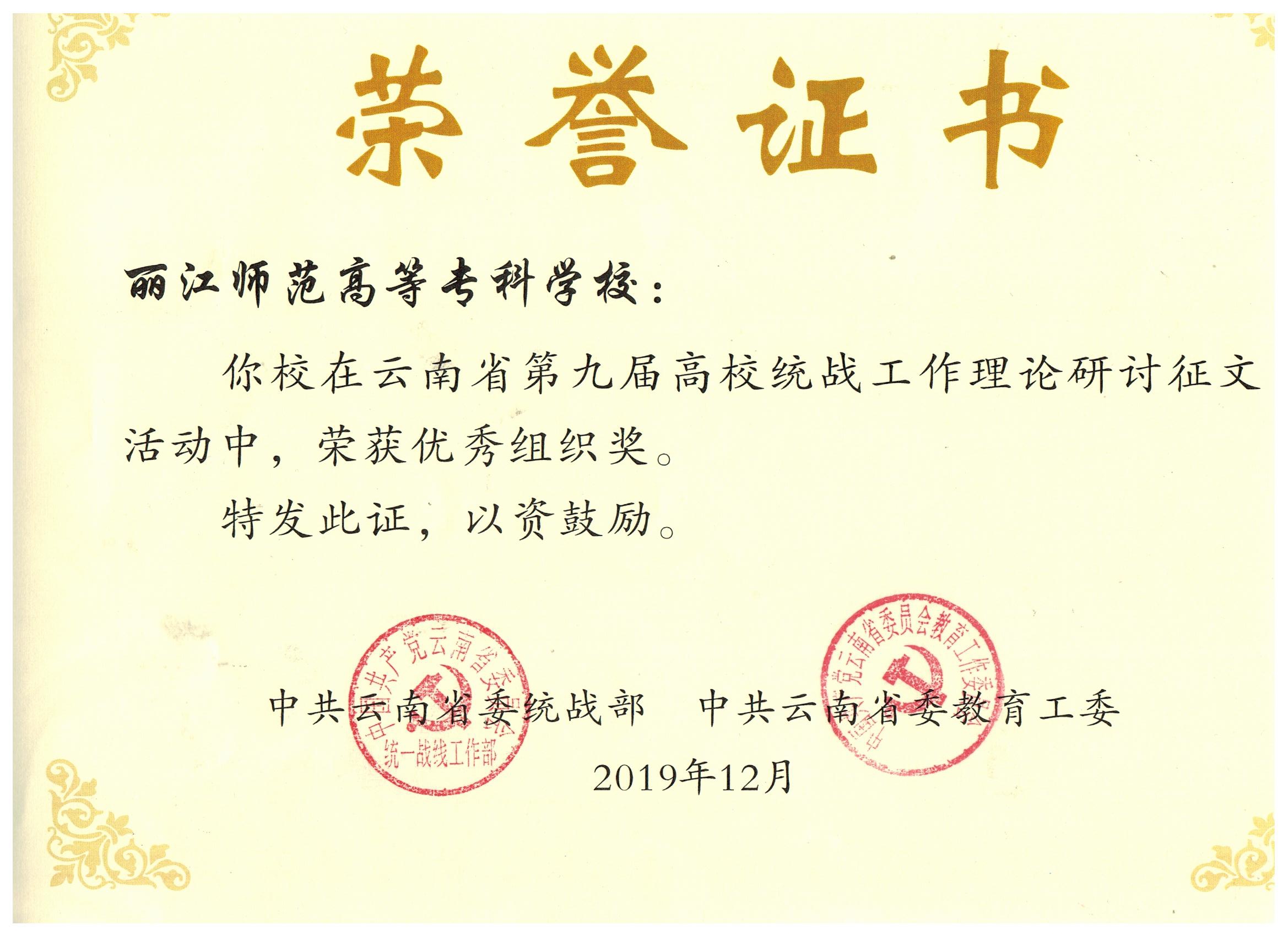 为深入学习贯彻习近平新时代中国特色社会主义思想和习近平总书记关于加强和改进统一战线工作的重要思想,进一步探索与研究新时代高校统战工作的特点和规律,助推云南省高校统战工作的创新与发展,今年4月,云南省委统战部与云南省委高校工委联合举办了以“探索·创新·提质”为主题的第九届高校统战工作理论研讨征文活动。我校对此次征文活动高度重视,精心组织教师撰写参赛论文,经内部评选,共报送4篇论文参赛。